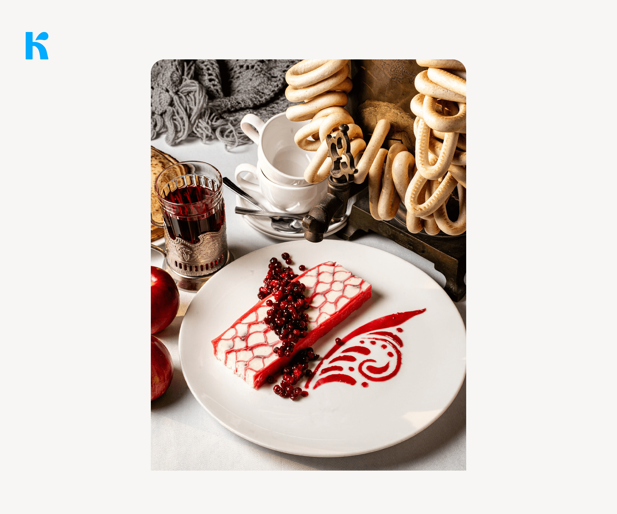 А изюминкой масленичного меню стали черничный блинный торт от Дарьи Терешонок-Кожуховской и пухлые оладушки со сметанным кремом и вишневым вареньем.