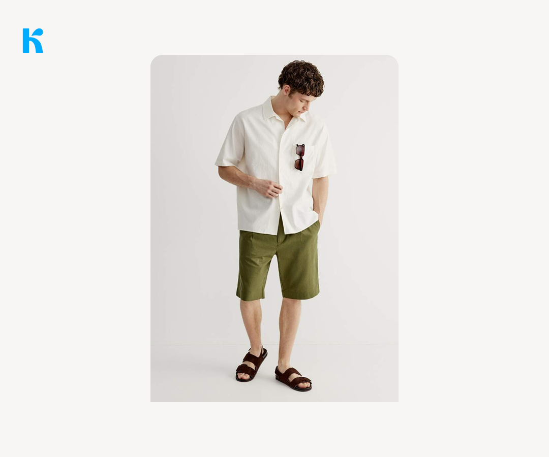 Речь не про короткие или спортивные модели. В офисном контексте появляются более строгие, «скроенные» шорты — с аккуратной посадкой, длиной до колена или чуть выше, и в сочетании с базовыми вещами вроде рубашек, поло или легких пиджаков. В таком виде они воспринимаются скорее как летняя альтернатива брюкам, а не как элемент отдыха.