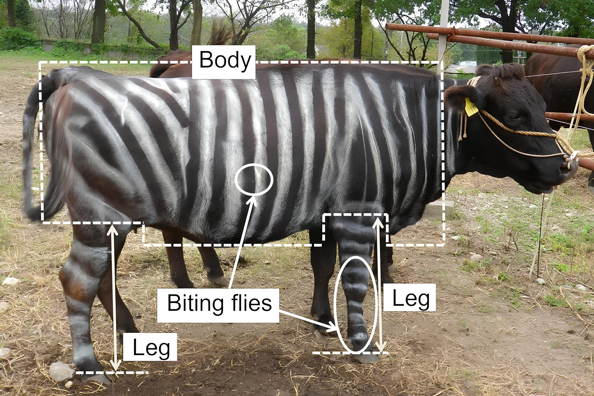 Детали про коров: модный принт против насекомых. Японские биологи совершили прорыв, раскрасив коров. Оказалось, что черно-белые полосы сбивают с толку каждого второго слепня — они не могут прицелиться для укуса. Страдания коров уменьшились, а молочная продуктивность выросла. Теперь буренки не просто защищены, они выглядят как морские стиляги.