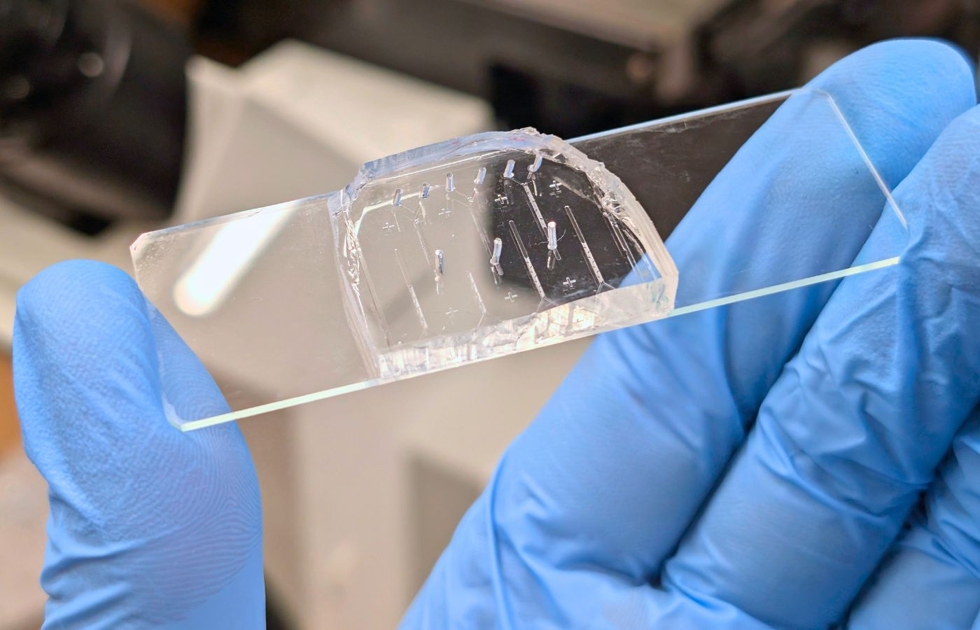 Петербургские исследователи из ИТМО, Академического университета им. Ж. И. Алферова и Института аналитического приборостроения РАН предложили другое решение. Они разработали микрофлюидный чип — систему из микроканалов со специальным рельефом, где люминол и образец смешиваются за доли секунды в объеме меньше капли воды. Датчик сразу фиксирует интенсивность свечения.